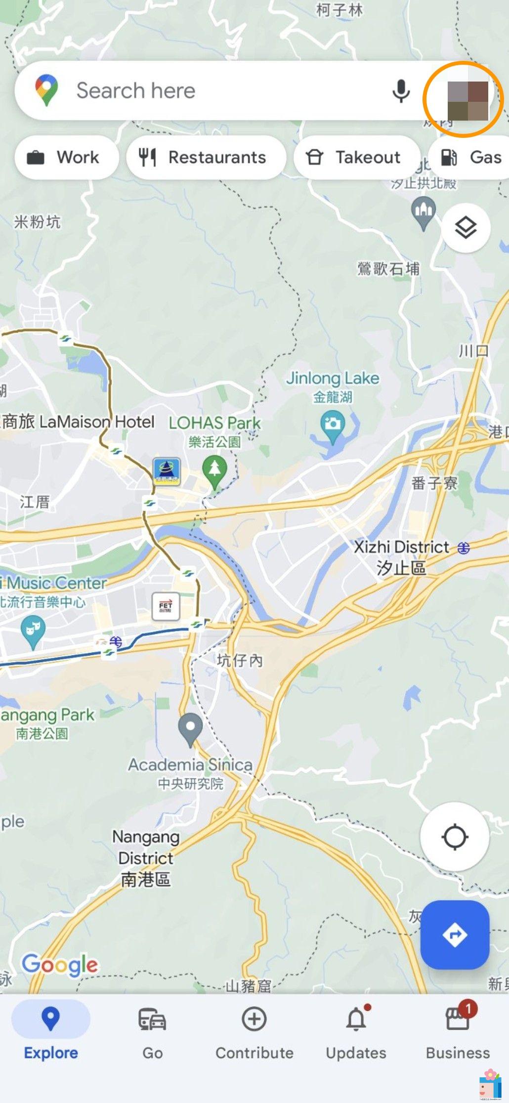 1.首先進到Google Map的app。接著點選右上角的大頭貼。