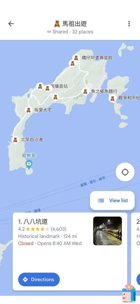 Google Maps有新功能啦!能將自建的清單更換Icon了。看到新功能出現就躍躍欲試。該怎麼將Google Map的地點換成特別的emoji呢?以下用馬祖的旅遊景點來當作範例。